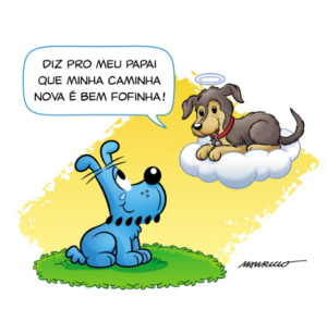No desenho a Estopinha fala para o Bidu “diz pro meu papai, que minha caminha nova é bem fofinha”, e na legenda da postagem está escrito “alguns amigos são pra sempre. Estopinha, a vira-lata mais amada do Brasil!”, uma lágrima sai do olho de Bidu olhando para Estopinha sobre as nuvens.